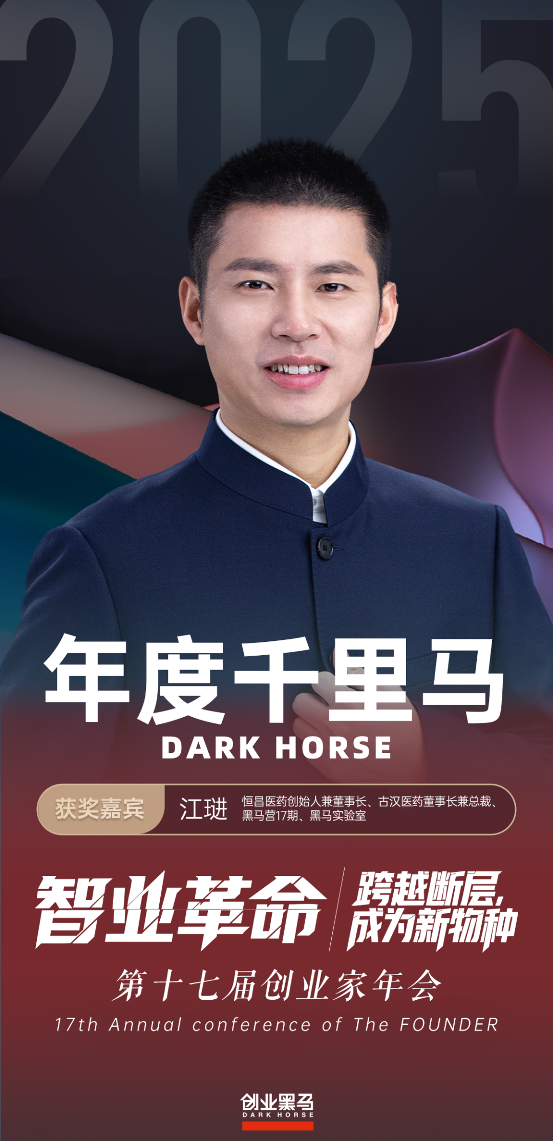 农历马年将至,恒昌医药、古汉医药董事长江琎在刚刚举办的创业黑马“第17届创业家年会”中,荣获“年度千里马”奖。此次获奖正是行业对其个人及企业发展成果与创新潜力的高度认可。